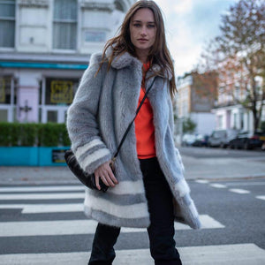 Our beautiful Grey Classic Coat with Cream Hem stripes.